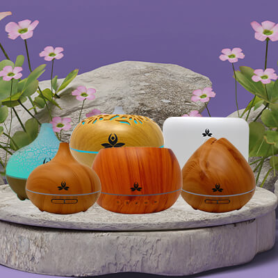 Types include ultrasonic diffusers (best for aromatherapy), reed diffusers, candle-powered ceramic diffusers, and nebulizing diffusers. For more information read our blog about the different types of diffusers.